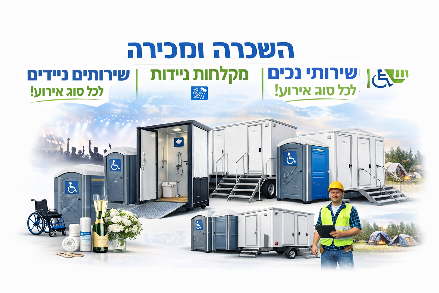 שירותים ניידים לנכיםתאי שירותים מונגשים בהתאם לתקני נגישותצפה